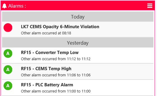 - View and acknowledge warning and exceedance alarms for failed calibration, invalid data, excess emissions and system health.